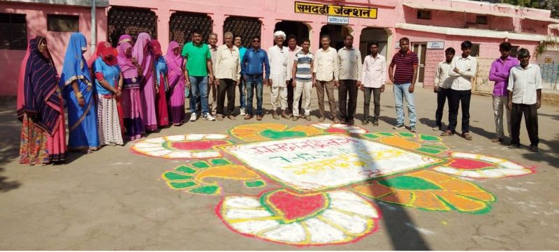 रेलवे स्टेशन क्षेत्र की आंगनबाड़ी कार्यकर्ताओं ने मतदाताओं को जागरूक करने को लेकर शनिवार को रेलवे स्टेशन के बाहर रंगोली बनाई। आंगनबाड़ी सुपरवाइजर कनु शर्मा, सरपंच रविंद्र सिंह जाट ने उपस्थित जनों से मतदान करने की अपील की।