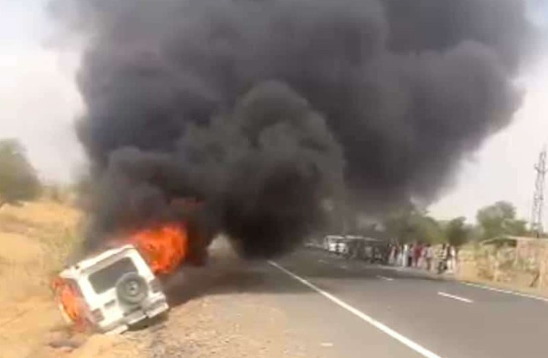 चौहटन(बाड़मेर)। बीजराड़ थाना क्षेत्र के जान्दुओं का तला सरहद में रविवार को एक जीप ने बाइक को चपेट में ले लिया। हादसे में बाइक सवार युवक की मौके पर मौत हो गई। हादसे में दोनों वाहनों में आग लग गई। घटना की सूचना मिलने पर बीजराड़ पुलिस ने मौके पर पहुंच कर जानकारी ली तथा शव को कब्जे लेने के साथ ही जले वाहनों को जब्त कर लिया।