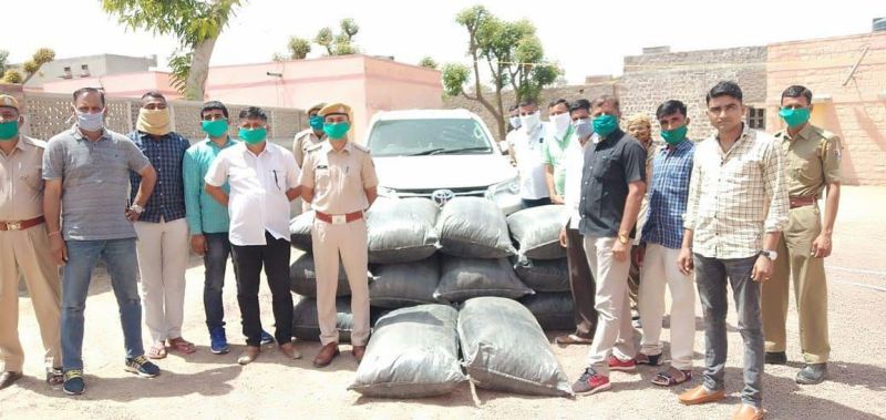 बाड़मेर. मादक पदार्थो की तस्करी की रोकथाम के लिए बाड़मेर जिले में चलाए जा रहे अभियान के तहत शनिवार देर रात धोरीमन्ना पुलिस ने नाकाबंदी के दौरान एक लग्जरी कार जब्त कर 18 लाख रुपए का अवैध डोडा-पोस्त बरामद किया। पुलिस की नाकाबंदी के दौरान तस्कर कार छोड़कर फरार हो गए। कार में एक लोडेड देसी कट्टा व 3 कारतूस बरामद हुए। पुलिस अधीक्षक आनंद शर्मा ने बताया कि धोरीमन्ना पुलिस को सूचना मिली की बिना नंबरी कार अवैध डोडा-पोस्त से भरी अरणियाली से मेघवालों की बस्ती की तरफ आ रही है। पुलिस ने सड़क मार्ग के दोनों तरफ से नाकाबंदी कर पीछा करते हुए घेराबंदी कर ली। आरोपी अंधेरे का फायदा उठाकर भाग गए। पुलिस ने मौके से जब्त कार में अलग-अलग कट्टों व बोरियों में भरा 350 किलो डोडा पोस्त बरामद किया। वाहन तलाश में एक कट्टा व 3 कारतूस भी बरामद हुआ। पुलिस ने मामला दर्ज कर जांच शुरू की। ्रसप्लाई की फिराक में थे तस्कर थानाधिकारी हरचंद देवासी ने बताया कि तस्कर अवैध डोडा पोस्त धोरीमन्ना क्षेत्र में सप्लाई करने आ रहे थे। तस्कर स्थानीय है, पुलिस खुफिया तंत्र के जरिए पता लगाने का प्रयास कर रही है। वाहन संभवत: चोरी का है। कच्चें रास्तों में भगाई कार पुलिस की दोनों तरफ नाकाबंदी की भनक लगने पर तस्करों ने लग्जरी कार को कच्चे रास्तों से भगाने का प्रयास किया, लेकिन पुलिस टीम पीछा करती है और सामने से थानाधिकारी खुद निजी वाहन से आ गए। यहां पर मेघवालों की बस्ती में नहर के किनारे खुद को घिरता देख तस्कर कार छोड़ भाग गए। सीमा सील तो तस्कर कहां से पहुंचेपुलिस का दावा है कि बाड़मेर जिले की सम्पूर्ण सीमाएं सीज कर पुलिस जाब्ता तैनात कर रखा है, लेकिन चौक पोस्ट को मादक पदार्थो की तस्करी में लिप्त तस्कर आंखों में धूल झौंक कर रास्ता पार कर रहे है। तस्कर कई जिलों की सीमाएं पार कर बाड़मेर तक पहुंच गए, लेकिन किसी ने नहीं तक रोका। यह रहे टीम में शामिल टीम में थानाधिकारी देवासी, हैड कांस्टेबल महेशाराम भादू, कांस्टेबल वीरमखान, पूनमचंद, लाभुराम, जबराराम, रामाराम, जगाराम, ओमप्रकाश, दिनेशकुमार व चालक भंवराराम शामिल रहे।केप्शन....बीआर0504...51....तस्करों की कार से बरामद डोडा-पोस्त के कट्टे तथा पुलिस टीम।52...तस्करों के वाहन की तलाशी में मिल देसी कट्टा व कारतूस।