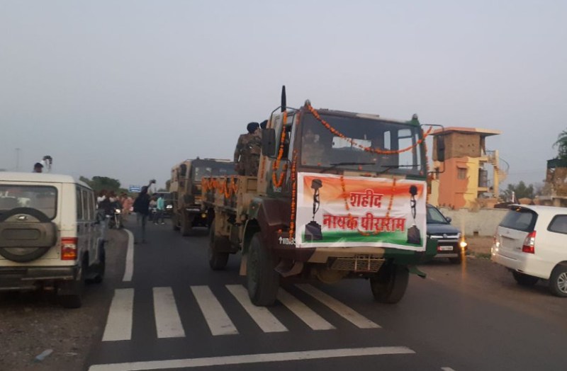 शहीद की पार्थिव देह सोमवार को दोपहर 2 बजे तक आना निर्धारित था लेकिन विमान से शव पहुंचने में देरी हो गई और शाम करीब छह बजे उत्तरलाई वायुसेना स्टेशन पर विशेष विमान से पहुंची। यहां से सेना के वाहन में काफिले के साथ शव जालिपा आर्मी स्टेशन के लिए रवाना हुआ।