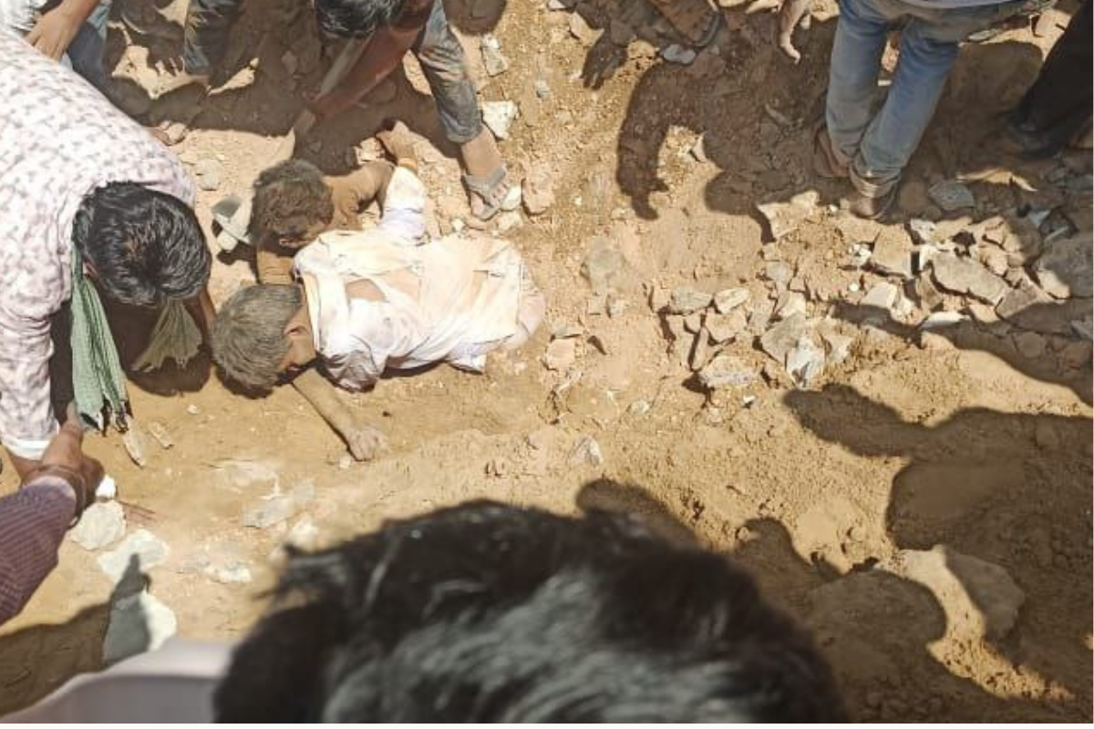 मलबे में दबे मजदूर को निकालते हुए (फोटो- पत्रिका)