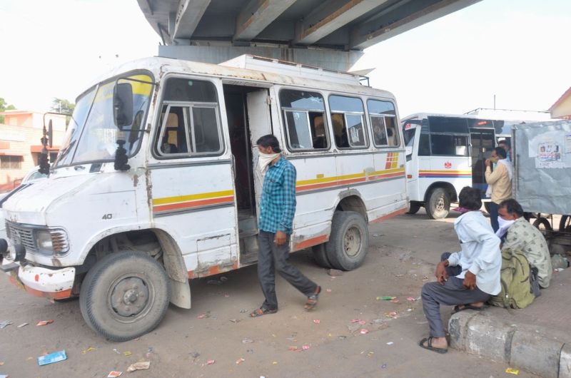 बाड़मेर में कार स्टैंड के पास मिनी बसों का अड्डा