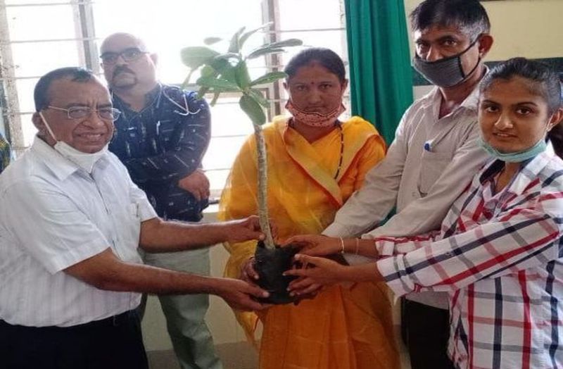 बाड़मेर में देहदान का घोषणा पत्र भरने के बाद शिक्षिका को पौधा प्रदान करते मेडिकल कॉलेज प्राचार्य डॉ. आरके आसेरी।