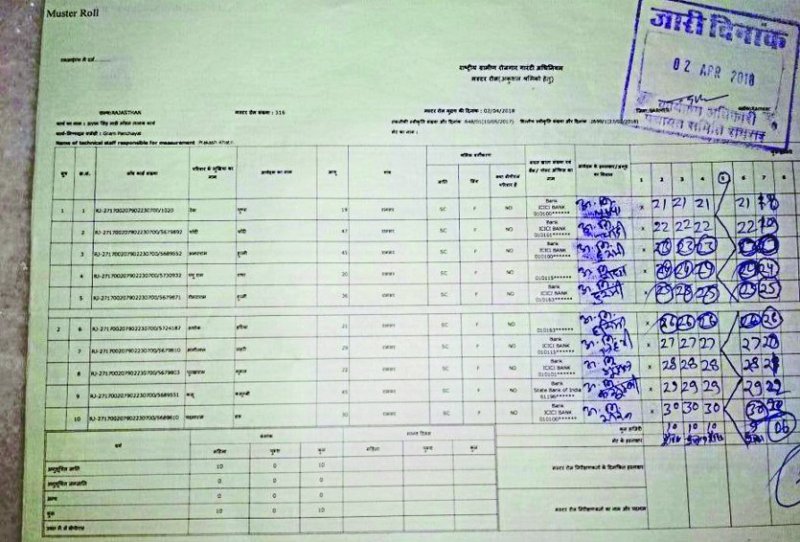 नाडी पर मस्टररोल में मेट एवं जेटीए की ओर से लगाई गई उपस्थिति पर विकास अधिकारी ने अनुपस्थित लगा दी, जबकि मजदूरों ने नाडी पर 4 दिन काम किया था। जोराराम, हुरमी, डाली सहित कई मजदूरों की लगी हुई हाजरियों पर अनुपस्थिति लगा दी।