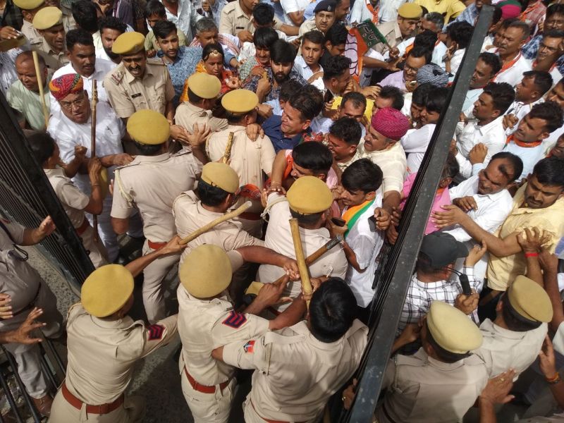 बाड़मेर में भाजपा का जनाक्रोश महाघेराव, कलक्ट्रेट पर जमकर प्रदर्शन