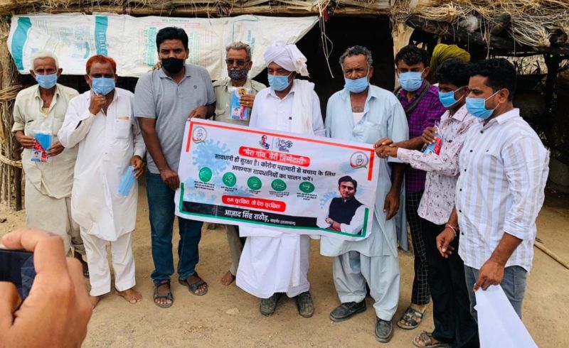 बाड़मेर. कांग्रेस पार्टी के युवा नेता आजाद सिंह राठौड़ ने कोविड सुरक्षा को लेकर गांवों में किट वितरित किए।