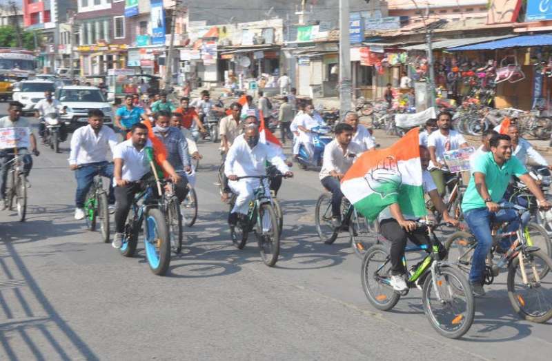 यहां पर इन्होने केन्द्र की भाजपा सरकार की ओर से पेट्रोल, डीजल व रसोई गैस के निरंतर दामों में बढ़ोतरी करने से आमजन को हो रही तकलीफ को लेकर नाराजगी जाहिर की। बाड़मेर विधायक मेवाराम जैन ने कहा कि केन्द्र की मोदी सरकार ने सत्ता में आने से पहले अच्छे दिन लाने का वादा किया था, लेकिन आज के हालात देख देश की आम जनता अपने आप को ठगा हुआ सा महसूस कर रही हैं। आमजन व गरीब बढ़ती मंहगाई को लेकर त्रस्त हैं।पूर्व उपाध्यक्ष एवं मुख्य प्रवक्ता यज्ञदत्त जोशी ने बताया कि एआईसीसी एवं प्रदेश कांग्रेस कमेटी के आव्हान पर कई दिनों से केन्द्र की भाजपा सरकार के विरोध में प्रदर्शन किया जा रहा हैं। इसी क्रम में शुक्रवार को कार्यकतार्ओं की ओर से सुबह 8 बजे अम्बेडकर सर्किल चैहटन रोड़ से साईकिल रैली निकाली गई। साईकिल रैली अहिंसा सर्किल पहुंची जहां केन्द्र की भाजपा सरकार का विरोध जताया गया।