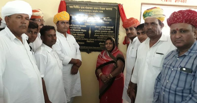 कल्याणपुर पत्रिका. रोड़वा कलां ग्राम पंचायत के नवनिर्मित भवन का उद्घाटन मंगलवार को पचपदरा विधायक मदन प्रजापत, जिला प्रमुख प्रियंका मेघवाल, प्रधान हरिसिंह उमरलाई ने किया।