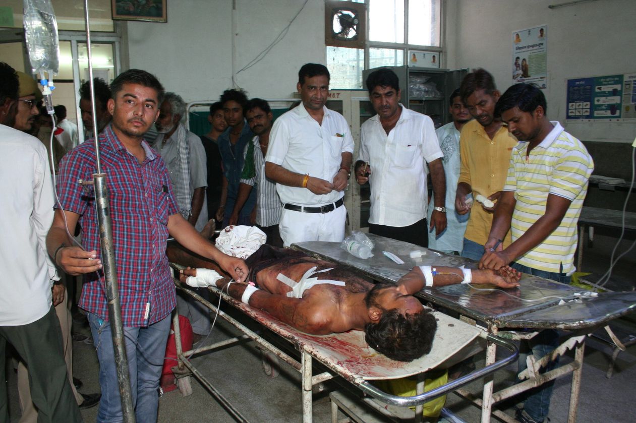 बालोतरा. राजकीय नाहटा अस्पताल में घायल टैक्सी चालक का उपचार करते चिकित्साकर्मी।