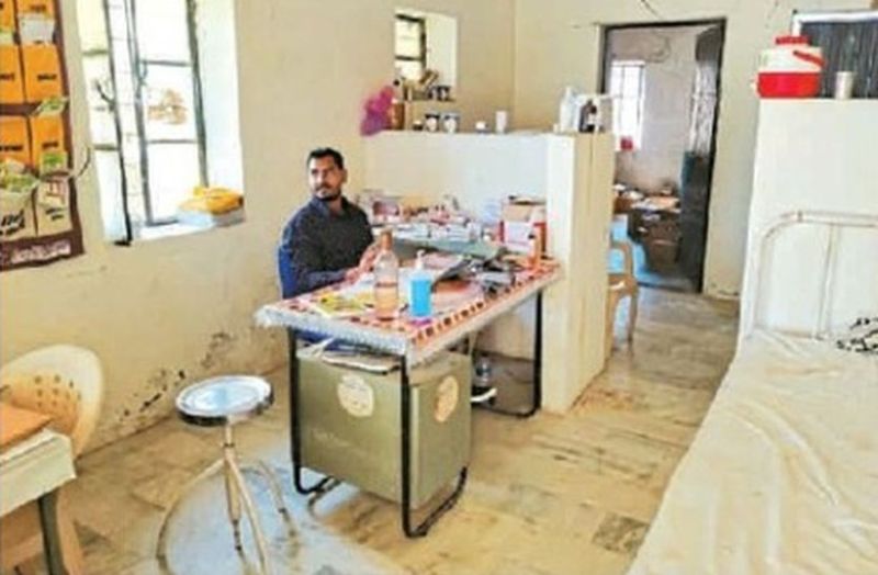 डंडाली में एक कमरे के पीएचसी में बैठे चिकित्सक व पास में रखा बेड।
