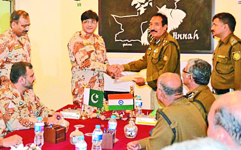 पाकिस्तान के खोखरापार में भारत और पाकिस्तान के सैन्य अधिकारियो के बीच बैठक हुई। इस बैठक में बीएसएफ और पाक रेंजर्स के अधिकारी शामिल हुए। करीब सात घंटे तक चली इस बैठक में कई मुद्दे उठाए गए। भारत और पाकिस्तान के बीच यह बैठक नौ माह बाद हुई है।बीएसएफ व रेंजर्स के मध्य मई 2017 में पिछली त्रैमासिक बैठक भारत में हुई थी। इसके बाद पाक रेंजर्स को अगस्त में भारत के साथ बैठक करनी थी लेकिन नौ माह तक पाकिस्तान ने भारत को बुलावा नहीं भेजा। जम्मू-कश्मीर में पाकिस्तानी घुसपैठ के चलते अभी पश्चिमी सीमा पर भी भारत-पाकिस्तान के संबंधों में खटास है। इस बार गणतंत्र दिवस पर मिठाई का आदान-प्रदान नहीं हुआ। लम्बे समय बाद गुरुवार को बैठक में बीएसएफ व पाकिस्तान रेंजर्स की ओर से अधिकारीयों का डैम शामिल रहा।