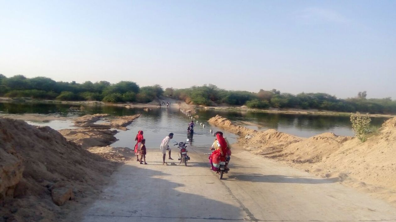 02-समदड़ी. भानावास-कोटड़ी सड़क की रपट पर बहता प्रदूषित पानी।