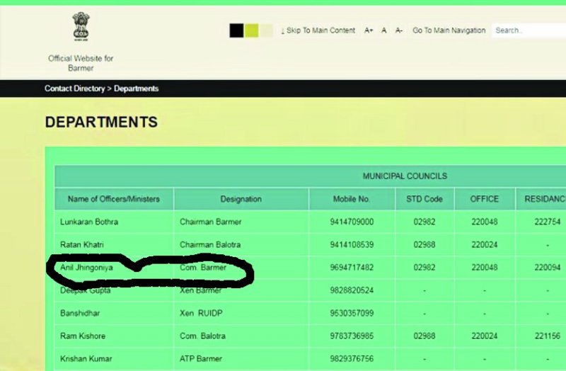 बाड़मेर. प्रदेश में पिछले साल सरकार बदलने के बाद अधिकांश विभागों के अधिकारियों के साथ कई कार्मिकों का तबादला हो गया। कई अधिकारी ऐसे हैं जो लगभग एक वर्ष से दूसरे जिले में नौकरी कर रहे हैं लेकिन बाड़मेर जिले की आधिकारिक सरकारी वेबसाइट पर आज भी उन्हीं का नाम है।