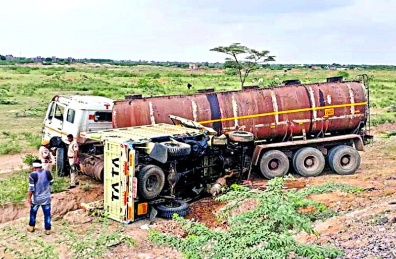इधर, पुल पर खड़े मिनी ट्रक को मारी टक्कर, वाहन नीचे गिरे- एनएच-25 पर पचपदरा के पास गुरुवार करीब दोपहर 3 बजे ओवरब्रिज पर खड़े मिनी ट्रक को सामने से आ रहे ट्रेलर ने गलत साइड में आकर टक्कर मार दी। इसमें चालक प्रकाश पुत्र मांगीलाल जाट निवासी बालोतरा घायल हो गया। वहीं, दोनों वाहन पलटी खाकर पुल से नीचे गिर गए। सूचना पर थानाधिकारी नेमाराम चौधरी मय जाप्ता मौके पर पहुंचे। घायल चालक को 108 एंबुलेंस ने मौके पर पहुंच सामुदायिक स्वास्थ्य केंद्र पहुंचाया।