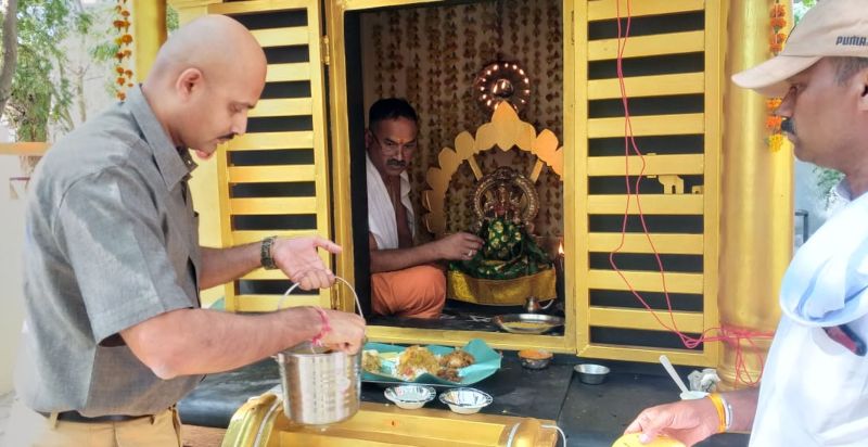 बाड़मेर. अय्यप्पा भगवान का पूजा महोत्सव का आयोजन 96 सडक़ निर्माण इकाई में रविवार को मेजर प्रवीण मैनन के सानिध्य में हुआ।