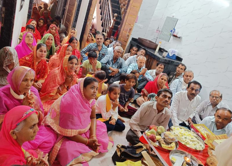 बाड़मेर.स्थानीय ढ़ाणी जैन धर्मशाला प्रागंण में मुनि सुमतिचन्द्रसागर,शीतलचन्द्रसागर के सानिध्य व उवसग्गहरं आराधक परिवार के तत्वावधान में चल रही चातुर्मास आराधना के अंतर्गत घर-घर में देव-गुरु-आगम व स्नात्र पूजा का आयोजन किया जा रहा है।