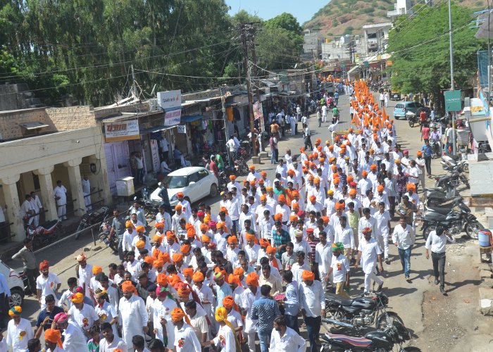 यात्रा में शामिल समाज के सदस्य केसरिया साफा बांधे हुए हाथ में केसरिया ध्वज लेकर शस्त्रों के साथ अलग-अलग टुकडिय़ों में रवाना हुए। यात्रा में घोड़ों पर केसरिया साफे, तलवार और राजपूती पोशाक के साथ सवार थे। रावत त्रिभुवनसिंह के नेतृत्व में राजपूत समाज के लोग केसरिया साफा पहने हुए कदम से कदम मिलाकर चल रहे थे। यात्रा गढ मंदिर रोड, गांधी चौक, स्टेशन रोड, अहिंसा सर्किल, अस्पताल रोड, रॉय कॉलोनी, तनसिंह सर्किल, सरदारपुरा होते हुए राणी रूपादे संस्थान पहुंची। मुख्य मार्गो में जगह-जगह पुष्प वर्षा कर शहरवासियों ने स्वागत किया। अपने आवास के बाहर विधायक मेवाराम जैन ने स्वागत किया।