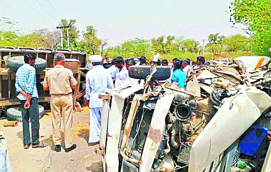 08- समदड़ी. पारलू के समीप दो वाहनों की भिड़ंत में मौके पलटे वाहन व पास में खड़े लोग।