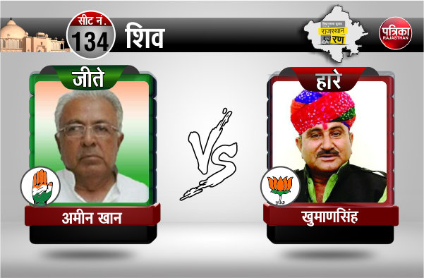 जैसलमेर लोकसभा क्षेत्र में आने वाली शिव विधानसभा सीट के लिए इस बार कुल पांच उम्मीदवार चुनावी मैदान में थे। कांग्रेस ने इस बार भी अपने पुराने प्रत्याशी पूर्व मंत्री अमीन खान को चुनाव मैदान में उतारा था, जो कि इस बार जीत गए। भाजपा ने यहां राजपूत उम्मीदवार मानवेंद्र सिंह के बदले राजपूत खुमाण सिंह को ही टिकट दिया, लेकिन वे चुनाव हार गए।