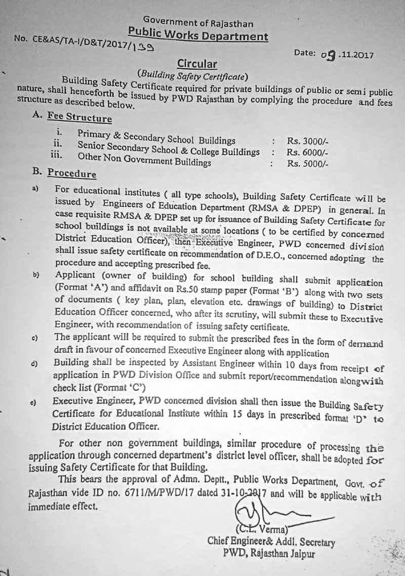 प्रदेश सरकार ने शिक्षा विभाग के निजी विद्यालयों को मान्यता प्रदान करने के लिए आवेदन आमंत्रित किए हैं। इस पर बालोतरा व क्षेत्र से कई आवेदकों ने प्राथमिक, माध्यमिक विद्यालय संचालन के लिए आवेदन किए। आवेदन पत्र के साथ उन्हें भवन सुरक्षा प्रमाण पत्र प्रस्तुत करना पड़ता है। भवन की जांच बाद सही पाए जाने पर सार्वजनिक निर्माण विभाग अभियंता प्रमाण पत्र जारी करते हैं। सार्वजनिक निर्माण विभाग मुख्य अभियंता ने 9 नवम्बर 2017 को जांच से पूर्व आवेदकों के किए आवेदन पर जिला शिक्षा विभाग प्रारंम्भिक व माध्यमिक से अनुशंसा करवाने के आदेश जारी किए। इसके बाद पूर्व में शिक्षा विभाग अधिकारियों ने कई आवेदनों पर अनुशंसा की, लेकिन अब वे अनुशंसा नहीं कर रहे हैं। इससे आवेदकों की परेशानी बढ़ गई है। इसके चलते आवेदकों को बालोतरा से बाड़मेर कार्यालय तक कई चक्कर लगाने को मजबूर होना पड़ रहा है।