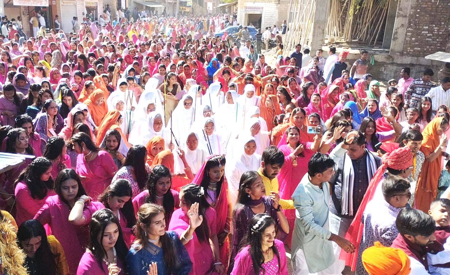 शांतिनाथ धर्मशाला से आचार्य मनोज्ञसूरीश्वर की निश्रा, साधु-साध्वीवृंद की पावन सानिध्य में शांतिनाथ दीक्षा कल्याणक के वर्षीदान वरघोड़े का आयोजन किया गया। वरघोड़े का नगर में जगह-जगह पर पुष्प वर्षा के साथ स्वागत हुआ। वरघोड़ा धर्मसभा स्थल हस्तिनापुर नगरी पहुंचा। यहां चढ़ावे की बोलियां बोली गई। धर्मसभा को संबोधित करते हुए आचार्य मनोज्ञसूरीश्वर ने कहा कि आज चहुं और खुशी का माहौल है। परमात्मा का वरघोड़ा निकला जिसका सकल समाजसाक्षी बना है। धर्म संस्कारों की जननी है। मन्दिर की ध्वजा दर्शन मात्र से ही बिगडे कार्य बन जाते हैं। पूर्व मंत्री हेमाराम चौधरी का जैन श्री संघ ने अभिनन्दन किया। हेमाराम चौधरी ने कहा कि मेरे राजनीति के 44 साल में जैन समाज के प्रतिष्ठा कार्यक्रम का पहली बार ऐसा माहौल देखा। उन्होने कहा कि जैन समाज के साधु-सन्तों जैसी तपस्या कोई धर्म कर ही नहीं सकता। ऐसे साधु-सन्तों के आशीर्वाद से ही पुण्य की प्राप्ति होती है। जैन श्री संघ के ट्रस्टी धनराज लूणिया व भैरचंदगांधी ने बताया कि कार्यक्रम में रडु मठ के शंकरपुरी, नाकोड़ा ट्रस्ट उपाध्यक्ष लूणकरण बोथरा, धोरीमन्ना सरपंच मनोहर बिश्नोई ने शिरकत की। संचालन बाबूलाल छाजेड़ ने किया।
