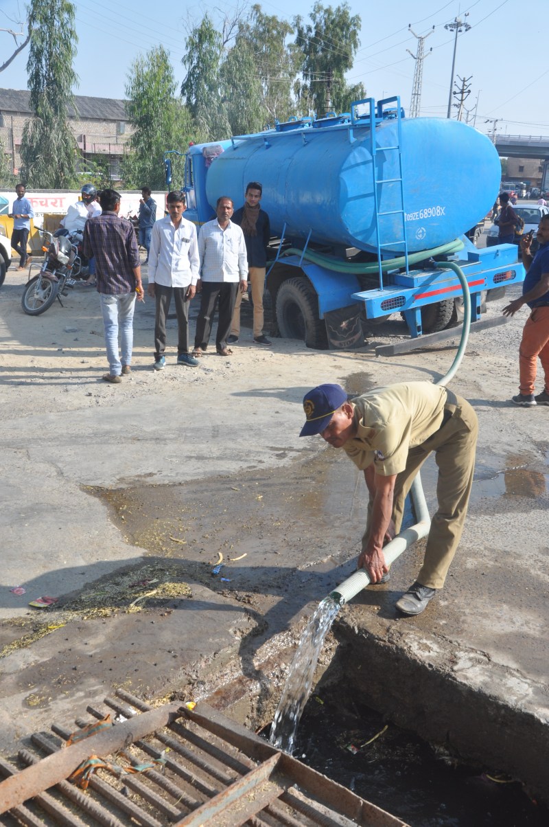 वाहन चालक ने टैंकर को निकालने का प्रयास किया, लेकिन नहीं निकलने पर उसने पास में नाले में पानी बहना शुरू किया। टैंकर को निकालने के लिए सैकड़ों लीटर पानी नाले में बहाना पड़ा।