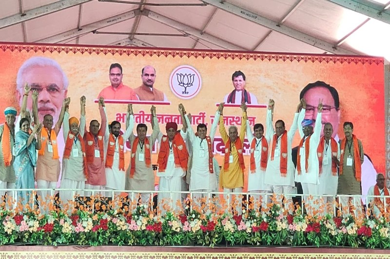 बाड़मेर में प्रधानमंत्री नरेंद्र मोदी की रैली से पहले रिटायर्ड आईएएस व पूर्व आरपीएससी चेयरमैन ललित के पंवार, महंत निर्मल दास महाराज सहित कई नेताओं ने भाजपा की सदस्यता ग्रहण की। मंच पर मौजूद मंत्री जोराराम कुमावत, केके विश्नोई, राज्यसभा सांसद मदन राठौड़, प्रत्याशी कैलाश चौधरी सहित भाजपा नेताओं ने दुपट्टा पहना कर इन नेताओं की भाजपा ज्वॉइन करवाई। वहीं, पूर्व सांसद मानवेन्द्र सिंह जसोल भी भगवा रंग में रंगे नजर आए। मानवेन्द्र सिंह की घर वापसी से उनके समर्थकों में जश्न का माहौल है।