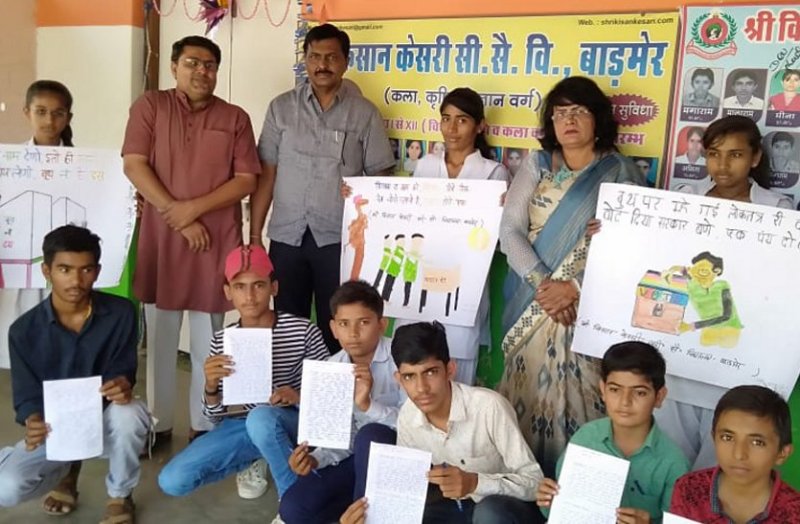 बाड़मेर में मतदाता जागरूकता अभियान के तहत गुरुवार को श्री किसान केसरी सीनियर सैकंडरी स्कूल में विद्यार्थियों ने मतदाता जागरूकता संबंधित पोस्टर बनाकर मतदान करने का संदेश दिया। निर्वाचन प्रकिया पर निबंध लिखने के साथ स्वीप का लोगो भी बनाया । विद्यार्थियों ने अपने अभिभावकों एवं पड़ोसियों को मतदान के लिए प्रेरित करने का भरोसा दिलाया।