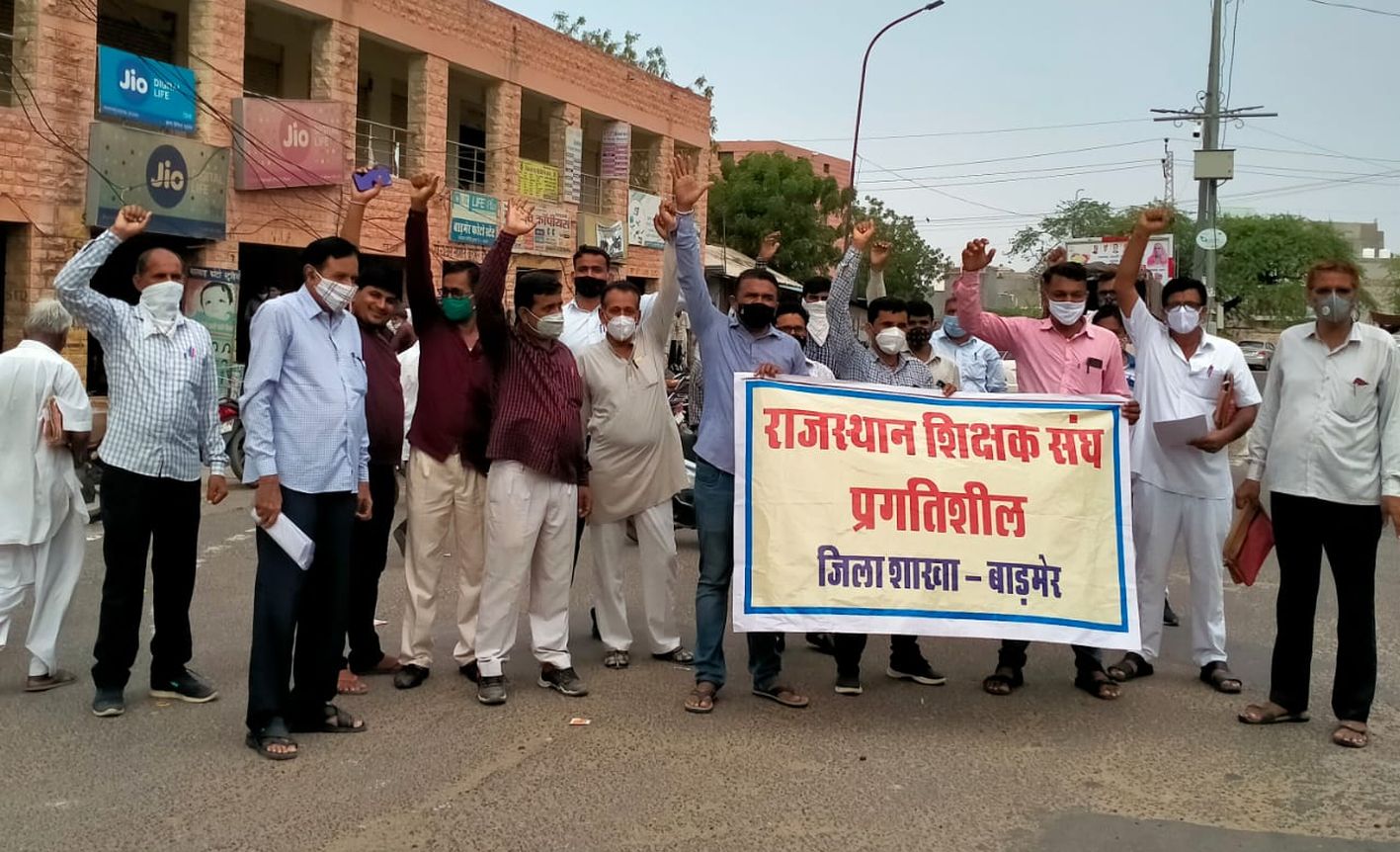 बाड़मेर. राजस्थान शिक्षक संघ प्रगतिशील के जिला शाखा के शिष्ठमंडल ने प्रदेशव्यापी आंदोलन के द्वितीय चरण के तहत आठ सूत्रीय मांगों को लेकर मुख्यमंत्री और शिक्षामंत्री के नाम सोमवार को जिला कलक्टर को ज्ञापन दिया। इस दौरान एक अन्य ज्ञापन प्रधानमंत्री के नाम देकर शिक्षकों एवं कर्मचारियों के महंगाई भत्ते की बकाया तीन किश्तें जारी करने की मांग की।