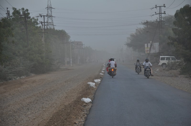 ये धुंध नहीं धूल है... बाड़मेर के शहीद सर्कल से सिणधरी रोड पर धीमी गति से चल रहा निर्माण परेशानी बन गया है। दीपावली से पहले सड़क का निर्माण पूरा करने का विभाग का दावा खोखला साबित हो गया। एक तरफ तो सड़क बन चुकी है, लेकिन दूसरी तरफ डामरीकरण नहीं होने से पूरे दिन वाहनों की आवाजाही से माहौल में मिट्टी घुल गई है। दिन-रात उड़ती धूल से वाहन चालक और राहगीर परेशान होते हैं। पत्रिका