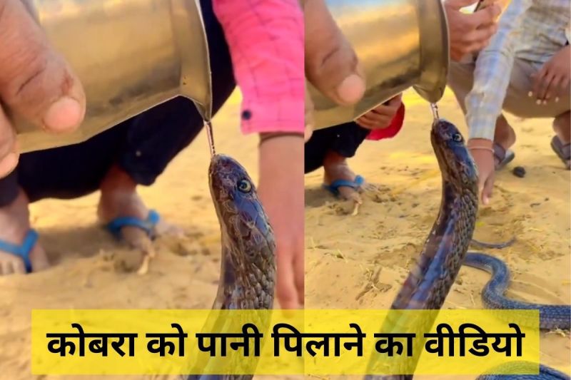 वीडियो में एक शख्स बिना किसी डर के कोबरा जैसे खतरनाक सांप को पानी पिला रहा है और प्यासा कोबरा बड़े आराम से अपनी प्यास बुझा रहा है। 23 सेकेंड के वीडियो को देखकर हर कोई हैरान है। दरअसल, ऐसा दावा किया जा रहा है कि वीडियो राजस्थान के रेेगिस्तान इलाके का है। वीडियो में एक युवक पानी के एक बर्तन से खतरनाक कोबरा को पानी पिला रहा है और कोबरा भी बड़े ही सुकून के साथ पानी पी रहा है। वीडियो सोशल मीडिया पर वायरल है। लोगों ने कमेंट कर पानी पिलाने वाले शख्स की तारीफ की है। एक यूजर्स ने लिखा कि, पुण्य कार्य कभी व्यर्थ नहीं जाएगा।जिस इंसान ने पुण्य कार्य किया है वह पुण्य उस इंसान को मुसीबत से हमेशा दूर ही रखता है। वहीं एक अन्य यूजर ने लिखा है कि भाई पानी आप पीला रहे हो डर मुझे लग रहा है।