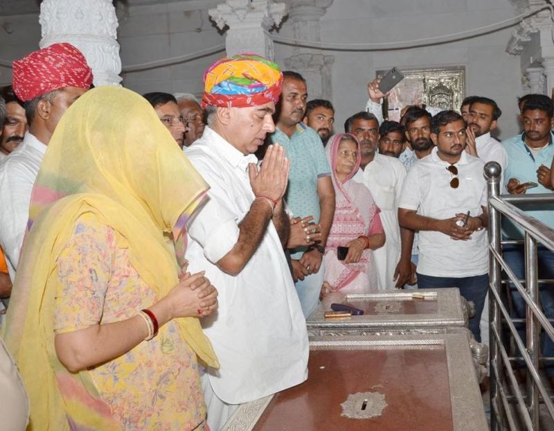 बाड़मेर. बाड़मेर के दौरे पर कुछ दिन पहले आई मुख्यमंत्री वसुंधराराजे ने जिन तीर्थ स्थलों पर शीश नवाया था, उन चार स्थानों पर वसुंधराराजे के धुरविरोधी मानवेन्द्रसिंह भी कांग्रेस में शामिल होने के बाद पहली बार बाड़मेर आगमन पर पहुंचे। हालांकि उनका दौरा लम्बा था, लेकिन मानवेन्द्र ने नागाणाराय मंदिर के साथ वसुंधराराजे के दौरे में शामिल माता राणी भटियाणी मंदिर जसोल, ब्रह्मधाम आसोतरा, जैन तीर्थ नाकोड़ा और लूम्बनाथ का धूणा में भी धोक लगाई।