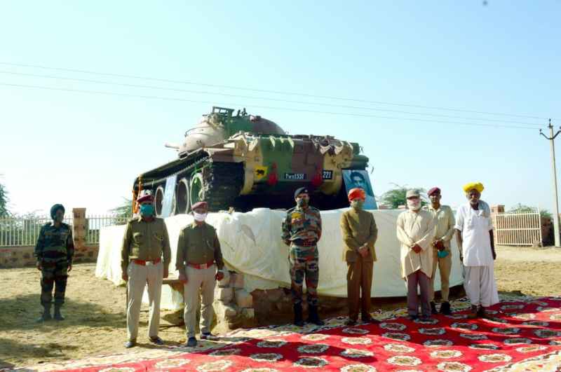 सन 1971 के युद्ध के 50 वीं वर्षगांठ की तैयारियों को लेकर सेना के कोणार्क रेजिमेंट की ओर से लेफ्टिनेंट कर्नल विश्वास कुमार जसोल पहुंचे । लेफ्टिनेंट जनरल स्व. हणूतसिंह के वार मेमोरियल में माल्यार्पण कर स्वागत किया। ओर उनके जीवन के बारे में जानकारी ली। जनरल हणूतसिंह जिन्होंने 1971 के भारत—पाक युद्व में अदम्य साहस का परिचय देते हुए पाकिस्तान के 48 टैंक की पूरी रेजिमेंट को ही नेस्तनाबूद कर दिया। उसके बाद सेना की ओर से सम्मान स्वरूप धोरा धरती बाड़मेर के जसोल गांव में उनकी ढाणी में भारतीय सेना का टैंक रखा गया। उनके ढाणी में कोविड-19 के तहत आयोजित हुए सादगी पूर्णं कार्यंक्रम में श्री राणी भटियाणी मंदिर संस्थान अध्यक्ष रावल किशन सिंह जसोल ने कहा कि भारतीय सेना के 12 सर्वंश्रेष्ठ जनरल में हणूतसिंह का नाम फख्र के साथ भारतीय सेना लेती है। जिन्होंने 1971 के भारत—पाक युद्व में अदम्य साहस का परिचय देते हुए पाकिस्तान के 48 टैंक की पूरी रेजिमेंट को ही नेस्तनाबूद कर दिया।