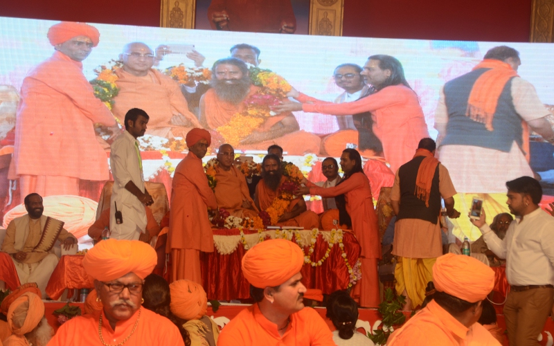 रामदेव ने कहा कि भारत में गौ-माता की हालात खराब है। हमारा संकल्प है कि मोदी के रहते हुए गौ हत्या का कंलक मिट जाएगा। उन्होंने कहा कि अपना कर्म ही धर्म है। विराट पुरूष की प्रतिमा है। रामदेव ने भजन की प्रस्तुती दी।