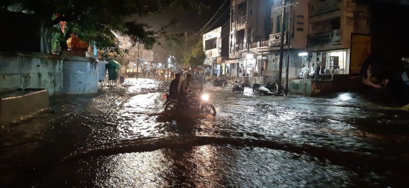 शुक्रवार शाम से शुरू हुई तेज बारिश से शहर का मुख्य नाला उफान पर रहा। नाले में पानी आ जाने से शहर के कालिका माता मंदिर मार्ग से आवाजाही बंद हो गई। तेज बारिश के बाद कारगिल चौराहा से लेकर पालाबाजार, नाला मार्ग व राधा मार्केट, पानी की टंकी तक सड़कों पर डेढ़ से दो फीट तक पानी जमा हो गया। इस दौरान यहां एक कार भी नाले में बह गई। पानी कम होने के बाद कार को जेसीबी की सहायत से नाले से निकाला गया। यहां लोगों की खासी भीड़ जमा हो गई।