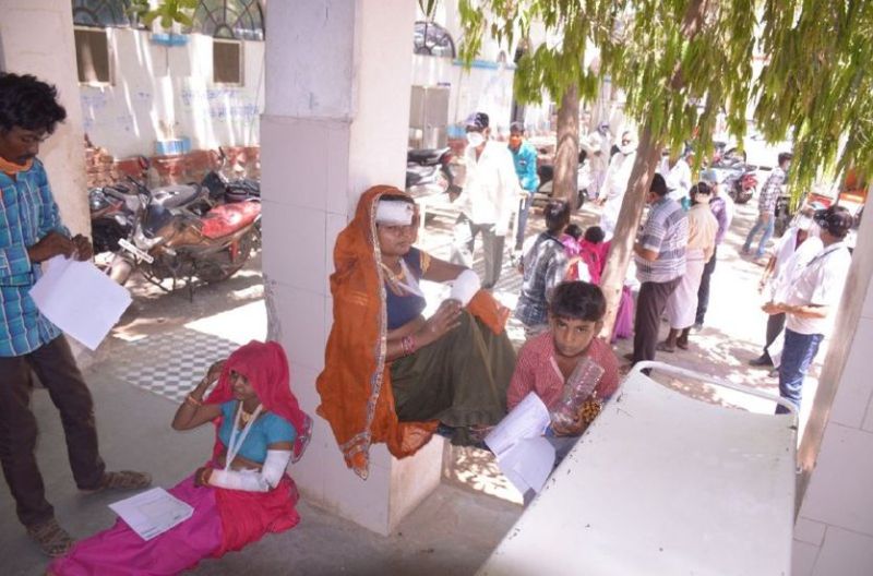 उपचार के बाद बैठे घायल।