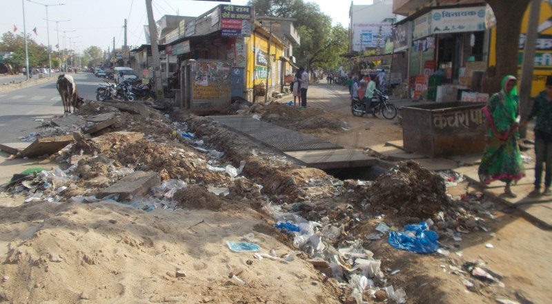 ठेकेदार ने नाले पर आधे से अधिक में तो जाल बिछा दिया, लेकिन कुछ हिस्से को खुला छोड़ रखा है। इतना ही नहीं, इसके पास ही कचरा पात्र रखा हुआ है, जो दुर्घटनाओं को न्योता दे रहा है। रास्ता बंद होने के कारण बिदाजी मोड़ से जुड़े रास्तों पर रहने वाले बांशिदों एवं दुकानदारों को कई किलोमीटर को फेरा लगाकर दूसरे रास्तों से आना जाना पड़ रहा है।