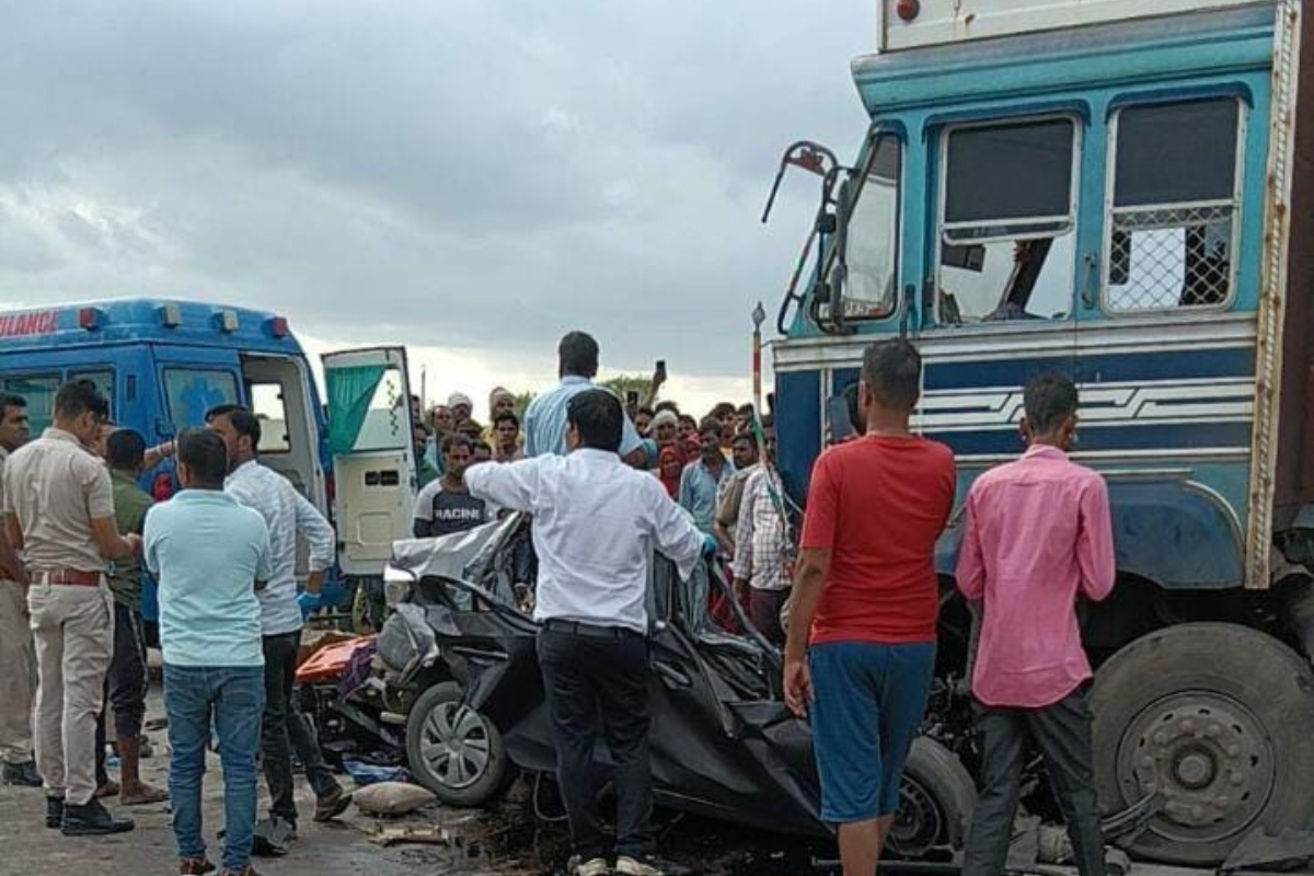 बीलवा में बिजली उपकरणों की दुकान करने वाला किशन शर्मा (28) पुत्र शंकर लाल शर्मा पत्नी पिंकी (25) व डेढ़ वर्षीय मासूम बेटी गुड्डू के साथ कार से कानोता के लिए रवाना हुआ था। वह रिंग रोड पर गलत दिशा से चढ़ा। कुछ दूरी पर ही कार की सामने से आ रहे टैंकर से भिड़ंत हो गई। टक्कर इतनी तेज थी कि कार टैंकर के नीचे फंस गई। परिवार के तीनों जनों की मौके पर ही मौत हो गई। पुलिस ने कड़ी मशक्कत के बाद शव बाहर निकाले। बताया जा रहा हैं कि हादसे के बाद टैंकर चालक मौके से भाग गया।