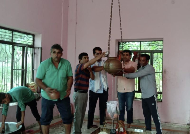 ग्राम हनुमानगर स्थित ठाकुर जी व शिव मन्दिर में सहस्त्र घट का आयोजन किया गया। इस दौरान पूजा अर्चना के बाद भोलेनाथ का जलाभिषेक किया गया। कार्यक्रम में ठाकुरजी व भोलेलाथ के जयकारों से मंदिर परिसर गुंजायमान रहा। ठाकुर जी के मन्दिर परिसर में पंडितों ने विधिवत पूजा अर्चना के बाद वेदमंद्धों के उच्चारण से भोलेनाथ का सहस्त्र घट जलाभिषेक किया। इसके बाद यज्ञ हवन में पूर्णाहुति दिलाकर सुख समृद्धि की कामना की। इस दौरान दिन भर मन्दिर में धार्मिक कार्यक्रम व जयकारों से वातावरण भक्तिमय बना रहा।