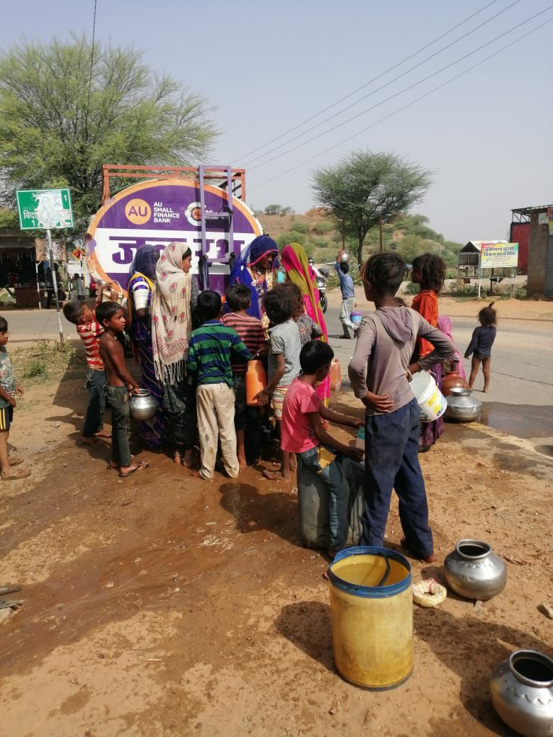 शाहपुरा। भीषण गर्मी में कई जगह लोगों को पेयजल समस्या का सामना करना पड़ रहा है। आमजन की समस्या को देखते हुए कुछ समाजसेवियों की ओर से पेयजल समस्याग्रस्त क्षेत्रों में निशुल्क पेयजल वितरण का सराहनीय कार्य किया जा रहा है। एयू बैंक शाहपुरा की ओर से जनता की पेयजल समस्या को देखते हुए शुरू की गई जल रथ सेवा के माध्यम से आमजन को नि:शुल्क टैंकर सप्लाई कर राहत पहुंचाने का कार्य किया जा रहा है।