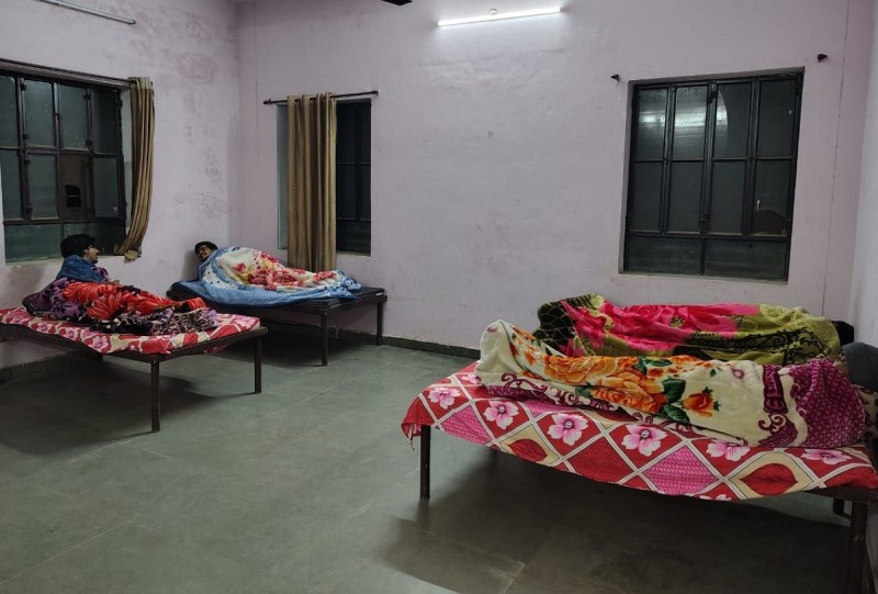 चौमूं रैन बसेरे में आराम कर रहे लोग।