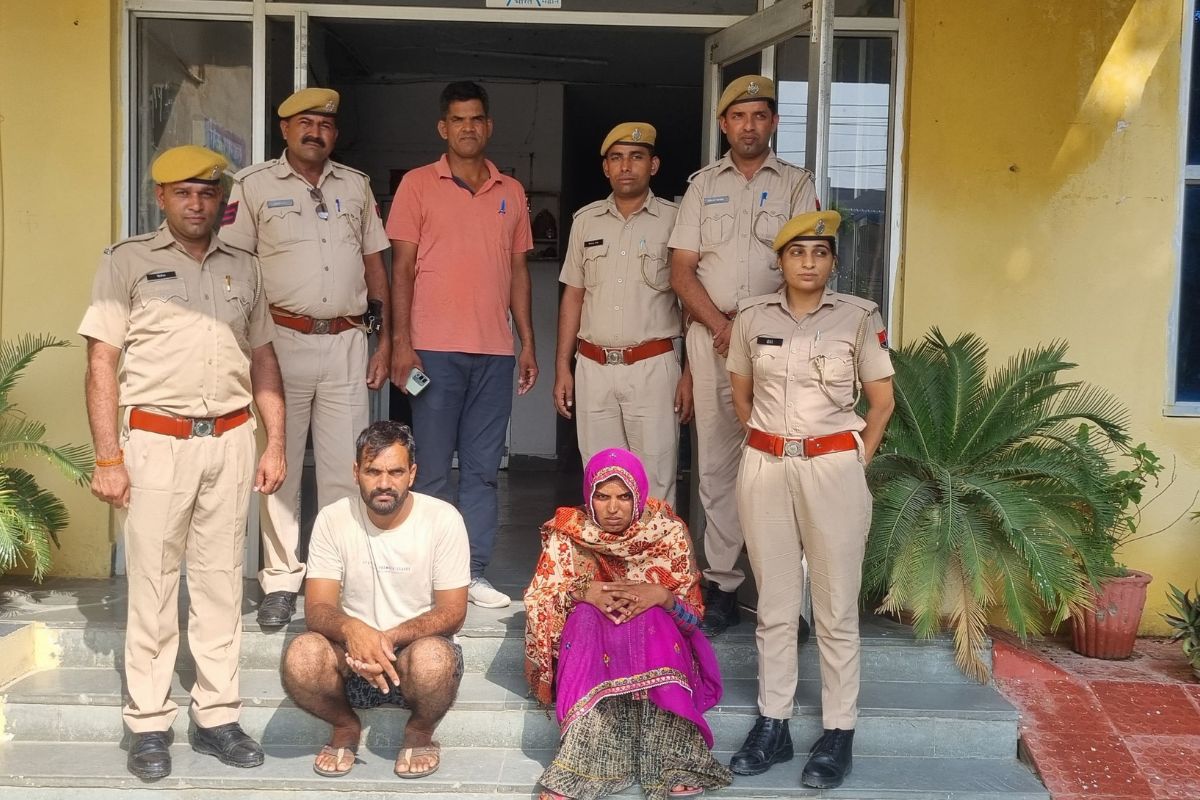 पुलिस की गिरफ्त में मृतक की पत्नी व उसका प्रेमी। पत्रिका