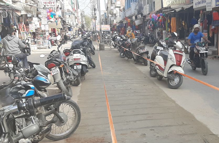मुख्य बाजार में डिवायडर पर वाहन पार्क करने की व्यवस्था शुरू की गई। डिवायडर पर वाहन खड़े किए जा रहे हैं। इसके बाद धीरे-धीरे बाजार के दोनों ओर भी वाहन खड़े करना शुरू कर दिए हैं। इससे अव्यवस्था दिनों दिन बढ़ रही है,जबकि सीवरेज लाइन डाले जाने के बाद सीसी सड़क का निर्माण हो चुका है। इसके अलावा फुटपाथ का काम भी हो गया है।