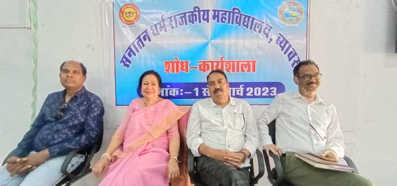 इस कार्यशाला में सनातन धर्म राजकीय महाविद्यालय ब्यावर के शोध पर्यवेक्षकों के नेतृत्व में विद्यावाचस्पति की उपाधि के लिए शोध कार्य कर रहे शोधार्थी शामिल हुए। शोध कार्यशाला की अध्यक्षता प्राचार्य वीरेंद्र सिंह भाटी ने की। मुख्य अतिथि पूर्व प्राचार्य अरुण गुप्ता रही। मुख्यवक्ता विकास नौटियाल, सह आचार्य शोध निदेशक डॉ रंगलाल सुवासिया, समन्वयक डॉ एमआर सिंगारिया ने मां सरस्वती के चित्र के समक्ष दीप प्रज्ज्वलित कर कार्यालय का उद्घाटन किया। शोध कार्यशाला के समन्वयक सिंगारिया ने बताया कि प्रतिदिन शोध कार्यशाला में 4 तकनीकी सत्र आयोजित किए जाएंगे। द्वितीय तकनीकी सत्र में सीमा शर्मा ने शोध विधा, पूर्व साहित्य अध्ययन ,शोध उद्देश्य एवं समस्याओं के बारे में बताया। पूर्व प्राचार्य अरुण गुप्ता ने बताया कि शोध के क्षेत्र में महाविद्यालय का कार्य उच्च कोटि का रहा है।