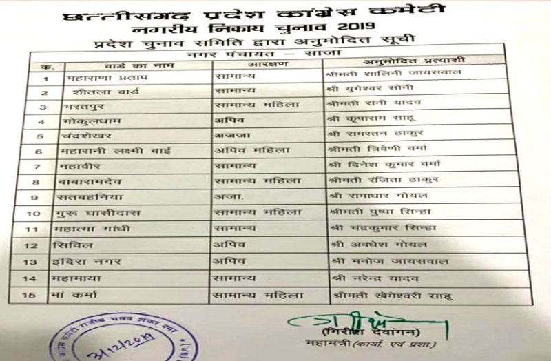 कांग्रेस ने आधी रात इन नगर पंचायतों के प्रत्याशियों की जारी की सूची, नए चेहरे देखकर मचा बवाल