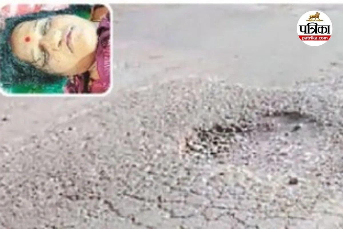बाइक अनियंत्रित होकर गड्ढे में गिरने से महिला की मौत (Photo source- Patrika)
