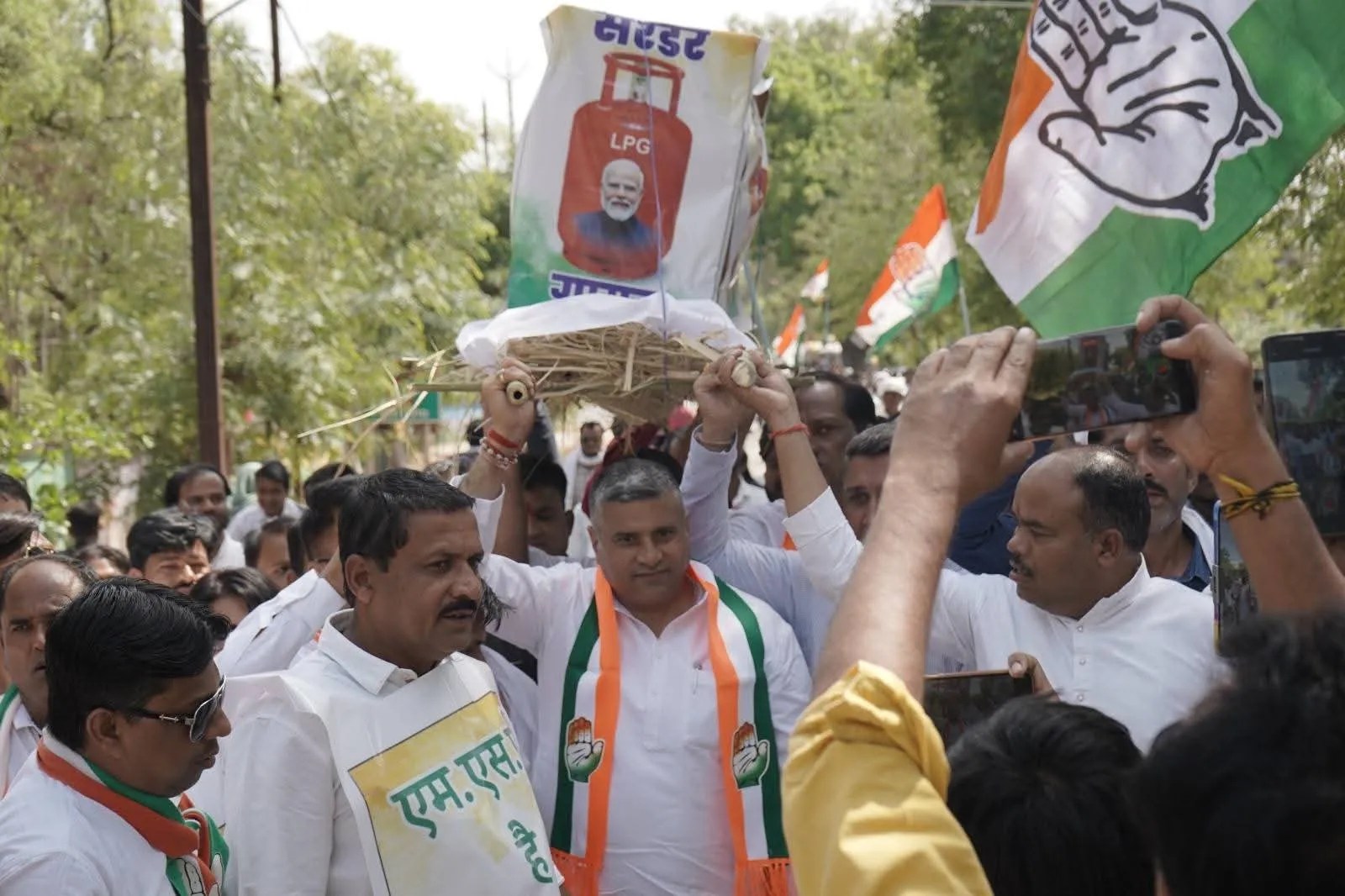 - गैस सिलेंडर की अर्थी निकालकर किया विरोध