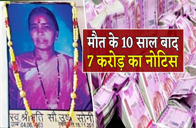शशांक नगर निवासी उषा सोनी की मौत 16 नवंबर 2013 को हो चुकी है। उषा सोनी शिक्षिका थीं। उनके पति त्रिलोक चंद सोनी वन विभाग से रिटायर्ड हैं। पत्नी की मौत के बाद इतनी बड़ी राशि का नोटिस मिलने से परिवार सदमे में है और यहां-वहां भटक रहा है। आयकर अधिकारी ने पति को विभाग के भोपाल स्थित कार्यालय में अपील करने की सलाह दी है। वहीं धोखाधड़ी की आंशका में पुलिस में शिकायत करने के लिए कहा है। जानकारी के अनुसार पंजाब की एक कपंनी नेचुरल कॉस्टिंग ने वर्ष 2014-15 में पाथाखेड़ा सारनी से चार से पांच करोड़ रुपए स्क्रेप खरीदा था। इसका लेन-देन खाते में किया था। इसके टैक्स की राशि जमा नहीं की गई। विभाग के माध्यम से पहले ई-मेल के माध्यम से सूचना भेजी गई थी। इस पर जवाब नहीं मिलने से फिर घर पर नोटिस भेजा है।