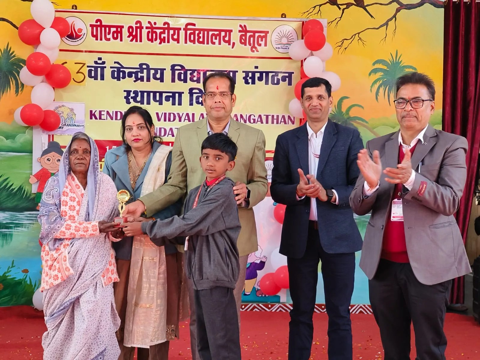 बैतूल। पीएम श्री केंद्रीय विद्यालय बैतूल में 15 दिसंबर को दादा-दादी एवं नाना-नानी दिवस के साथ केंद्रीय विद्यालय संगठन का स्थापना दिवस मनाया गया। इस अवसर पर विद्यालय परिसर में भावनाओं, संस्कारों और सांस्कृतिक रंगों का सुंदर संगम देखने को मिला, जहां बच्चों, अभिभावकों और वरिष्ठजनों की उपस्थिति ने आयोजन को विशेष बना दिया।
