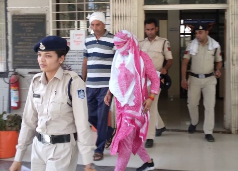 हरदा. सिटी थाने से महिला को मेडिकल के लिए जिला अस्पताल ले जाते पुलिसकर्मी।